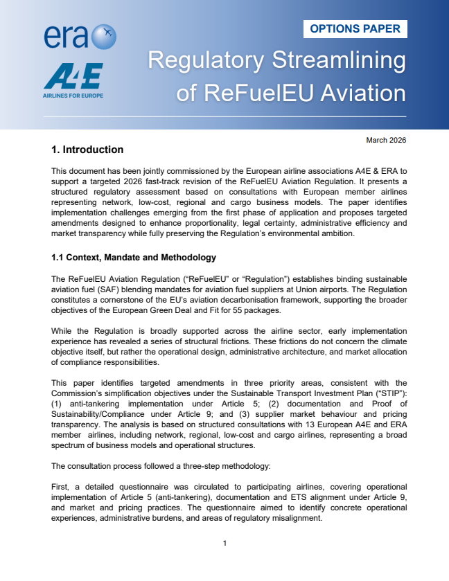 Joint Options Paper on Regulatory Streamlining of ReFuelEU Aviation